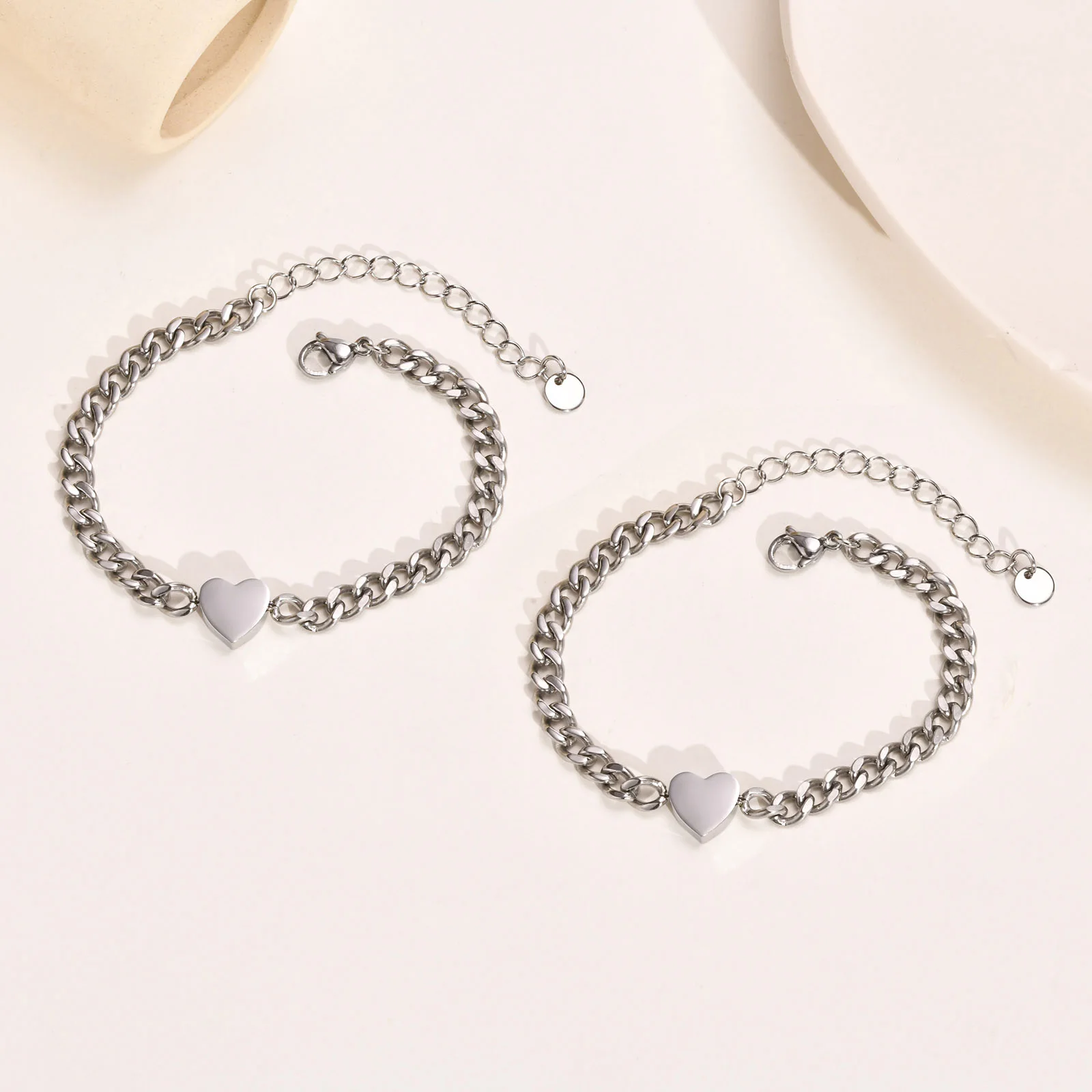 Vnox Love Heart Couple Bracelets for Men Women, Adjustable Stainless Steel Cuban Chain Bracelets Set,Valentines Day Gift for Him