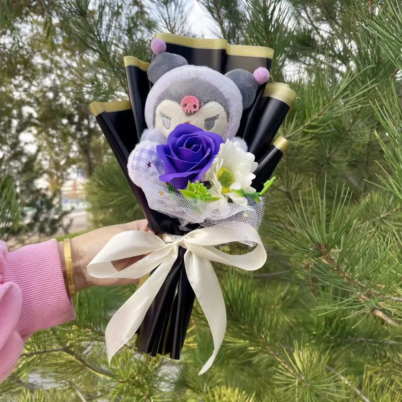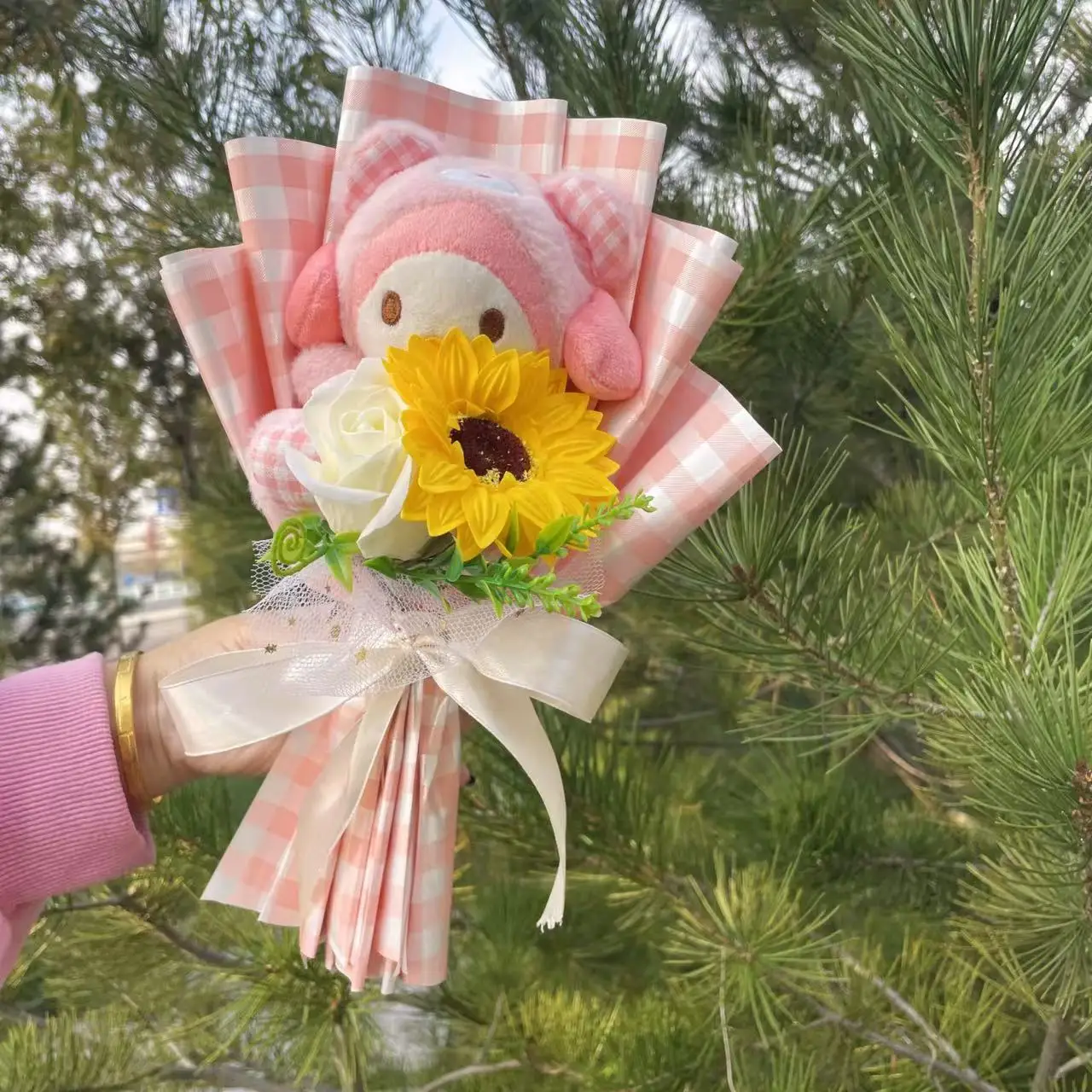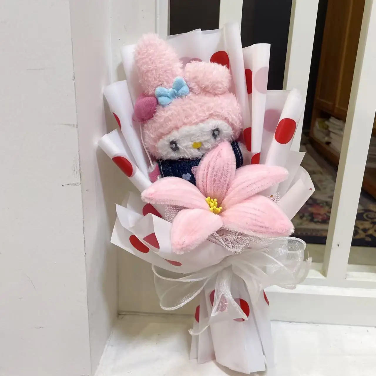 Cartoon My Melody Kuromi Cinnamoroll Kt Cat Plush Doll Creative Flower Bouquet Valentine Christmas Graduation Birthday Gift