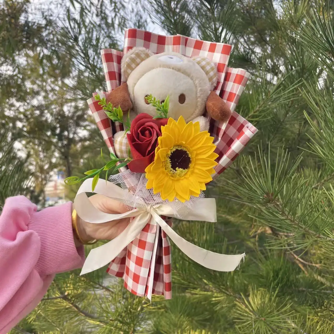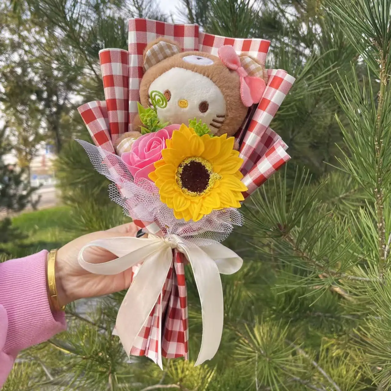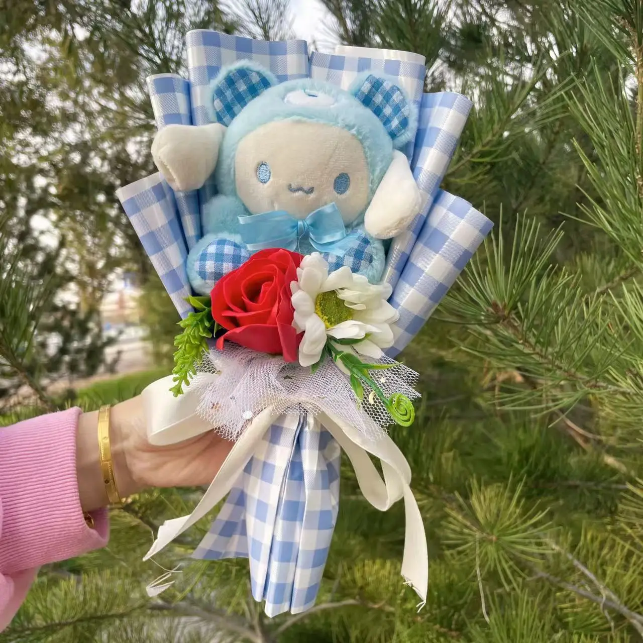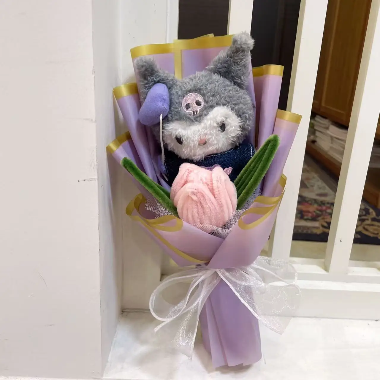 Cartoon My Melody Kuromi Cinnamoroll Kt Cat Plush Doll Creative Flower Bouquet Valentine Christmas Graduation Birthday Gift