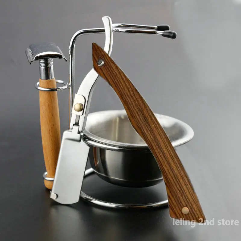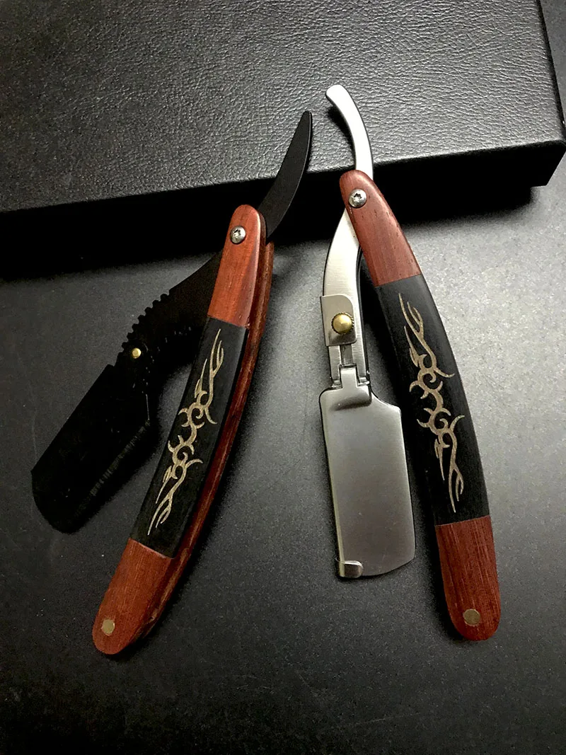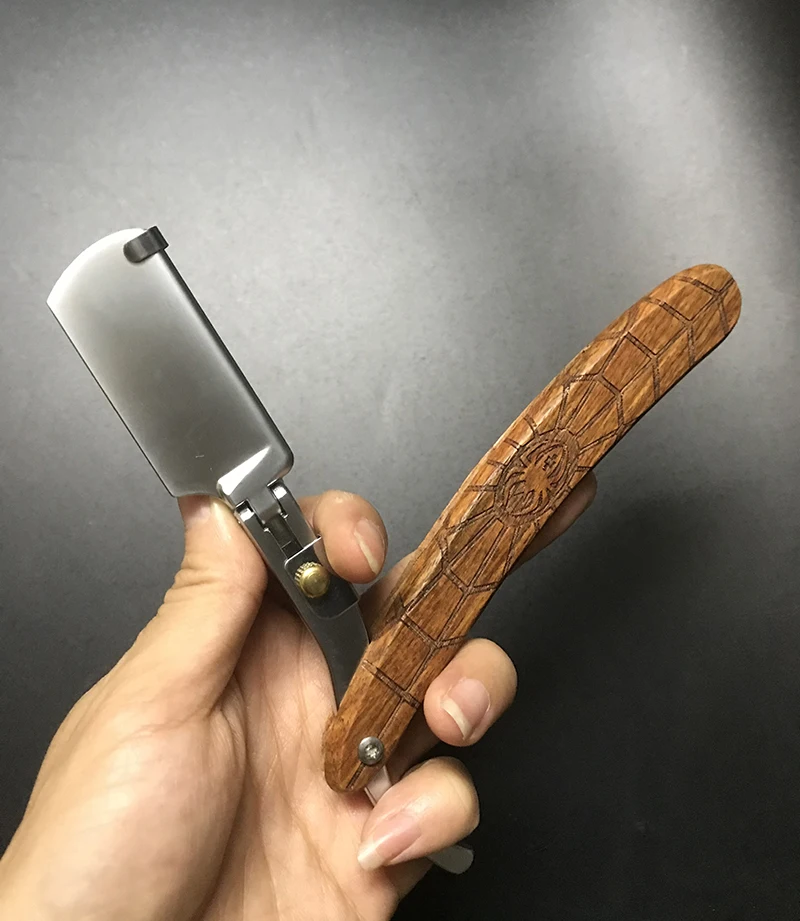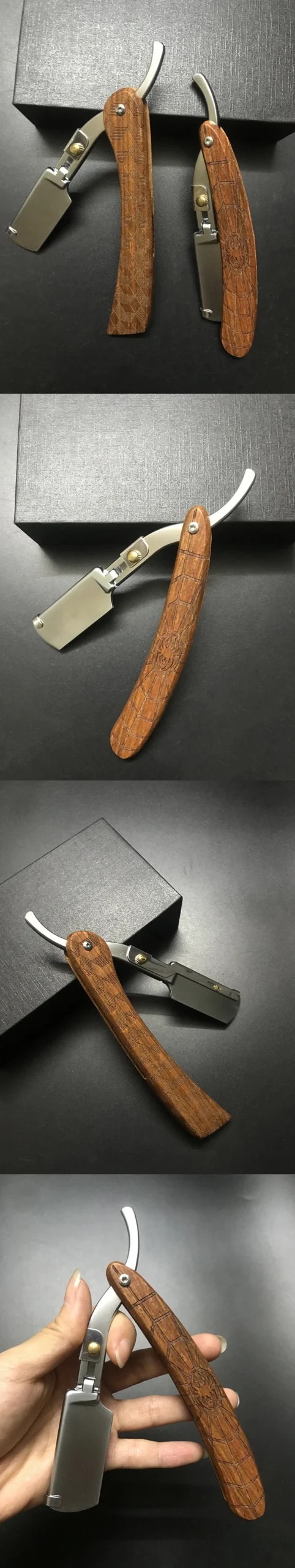 Men Straight Razor Edge Wood Stainless Steel Sharp Barber Razor Professional Manual Shaver Shaving Safety Beard Cutter Tools