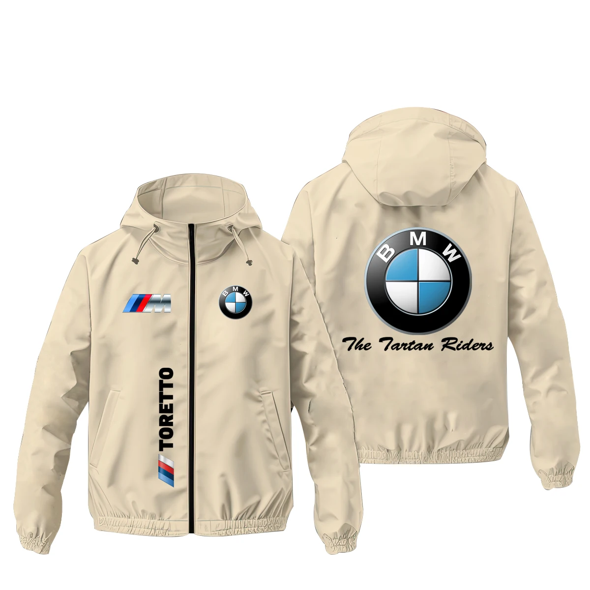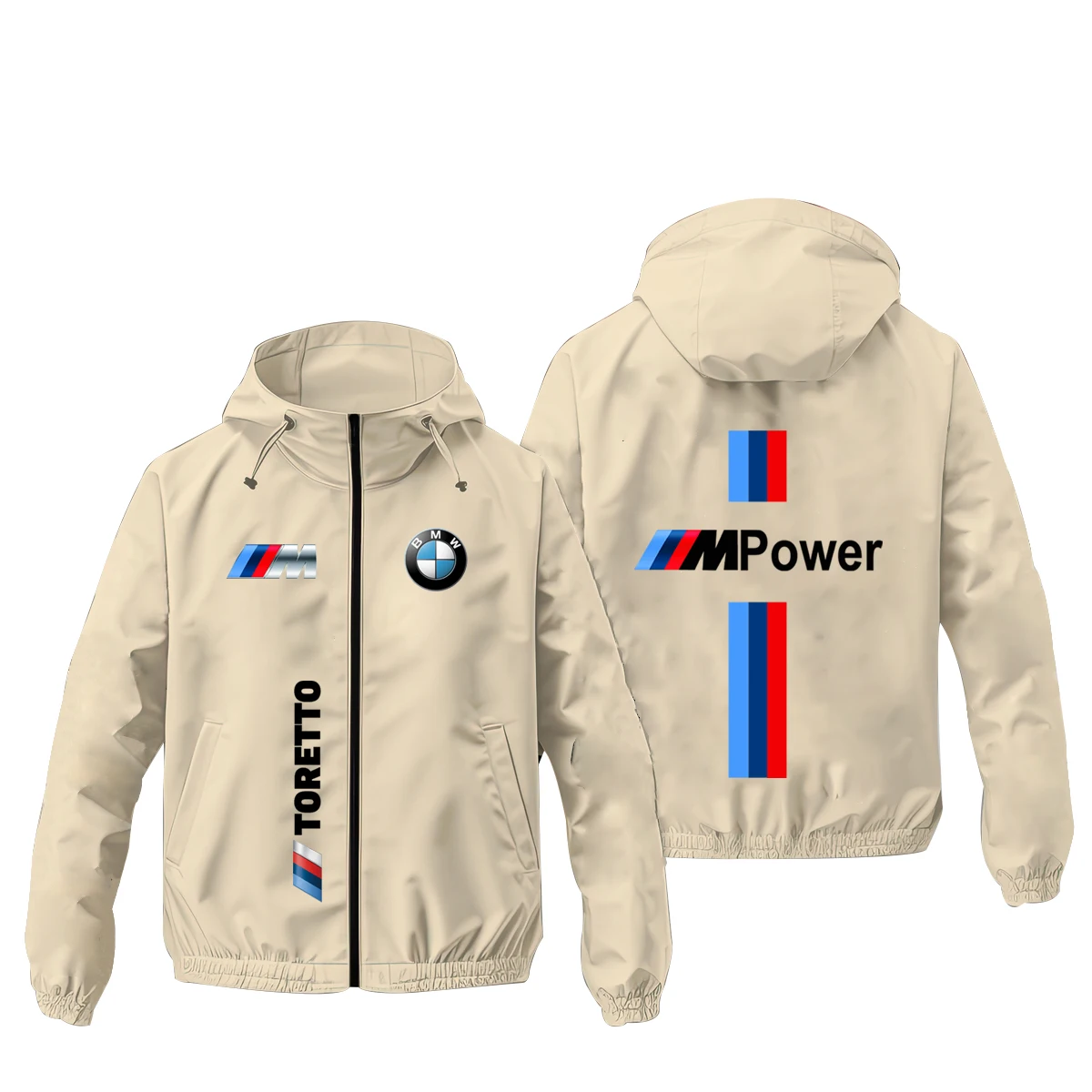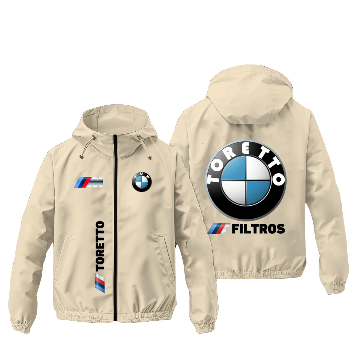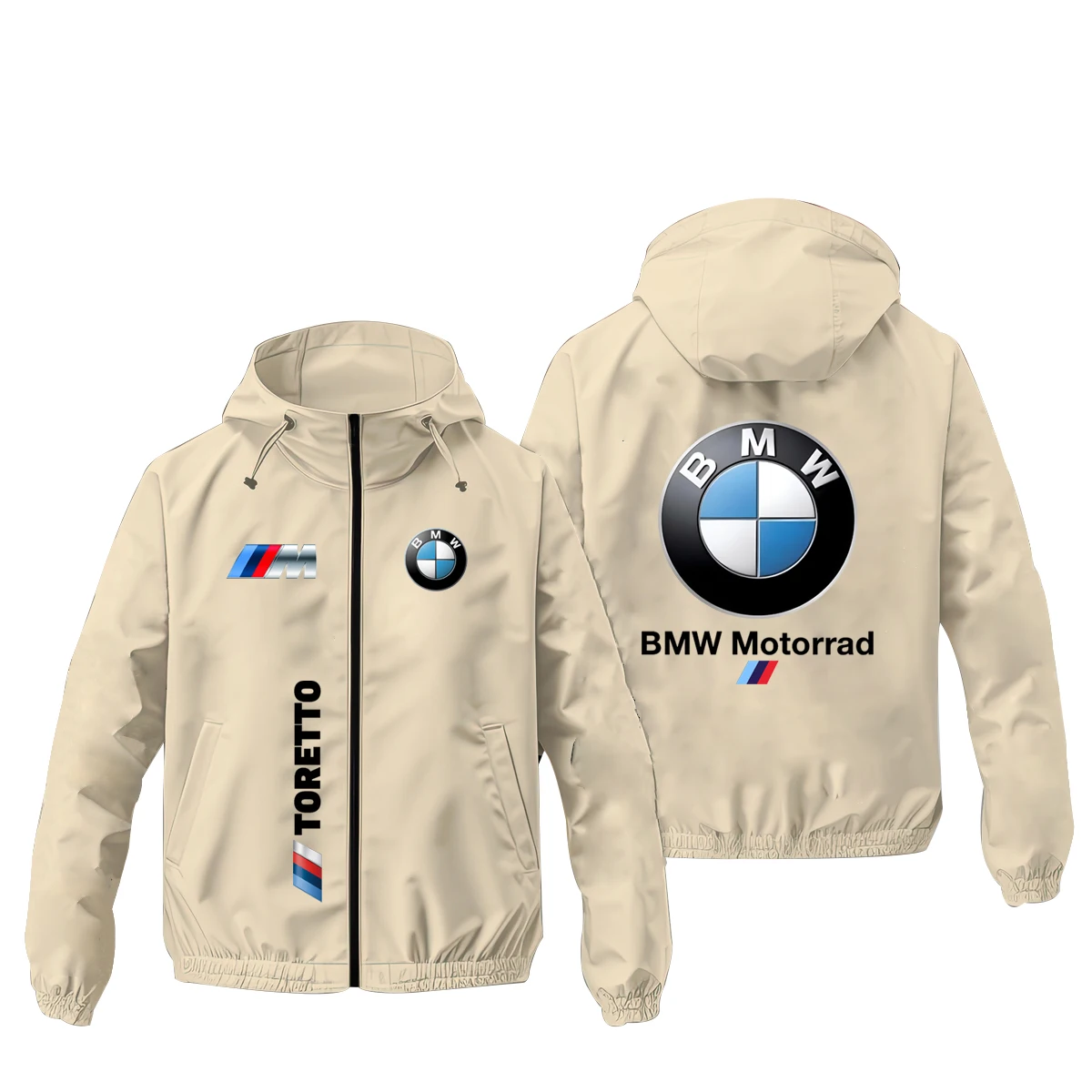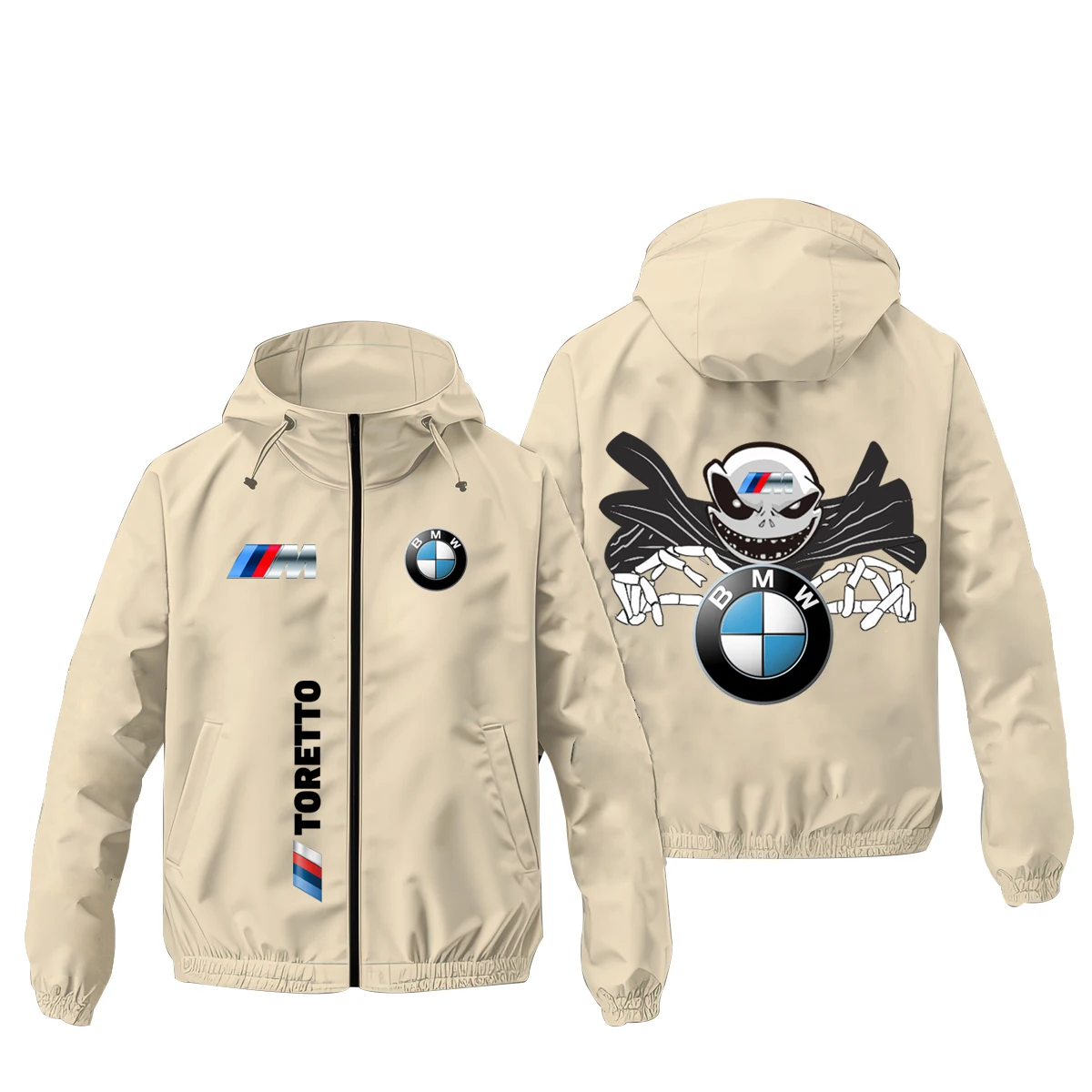 Men’s Casual Stand Up Collar Zipper Sportswear Jacket Waterproof Jacket Hooded BMW 3D Printed Pattern Bicycle Sunscreen Jacket