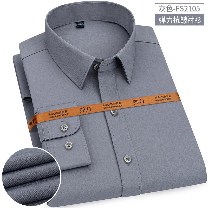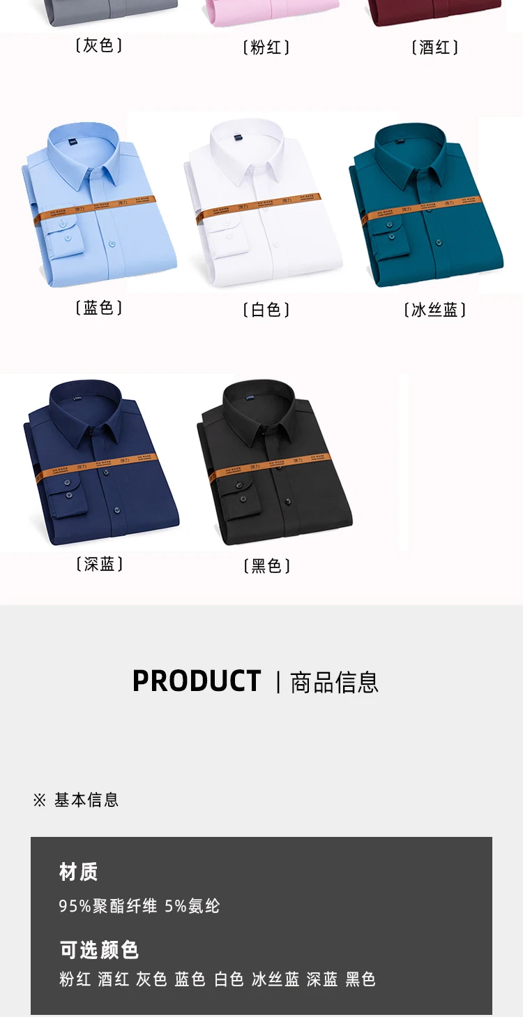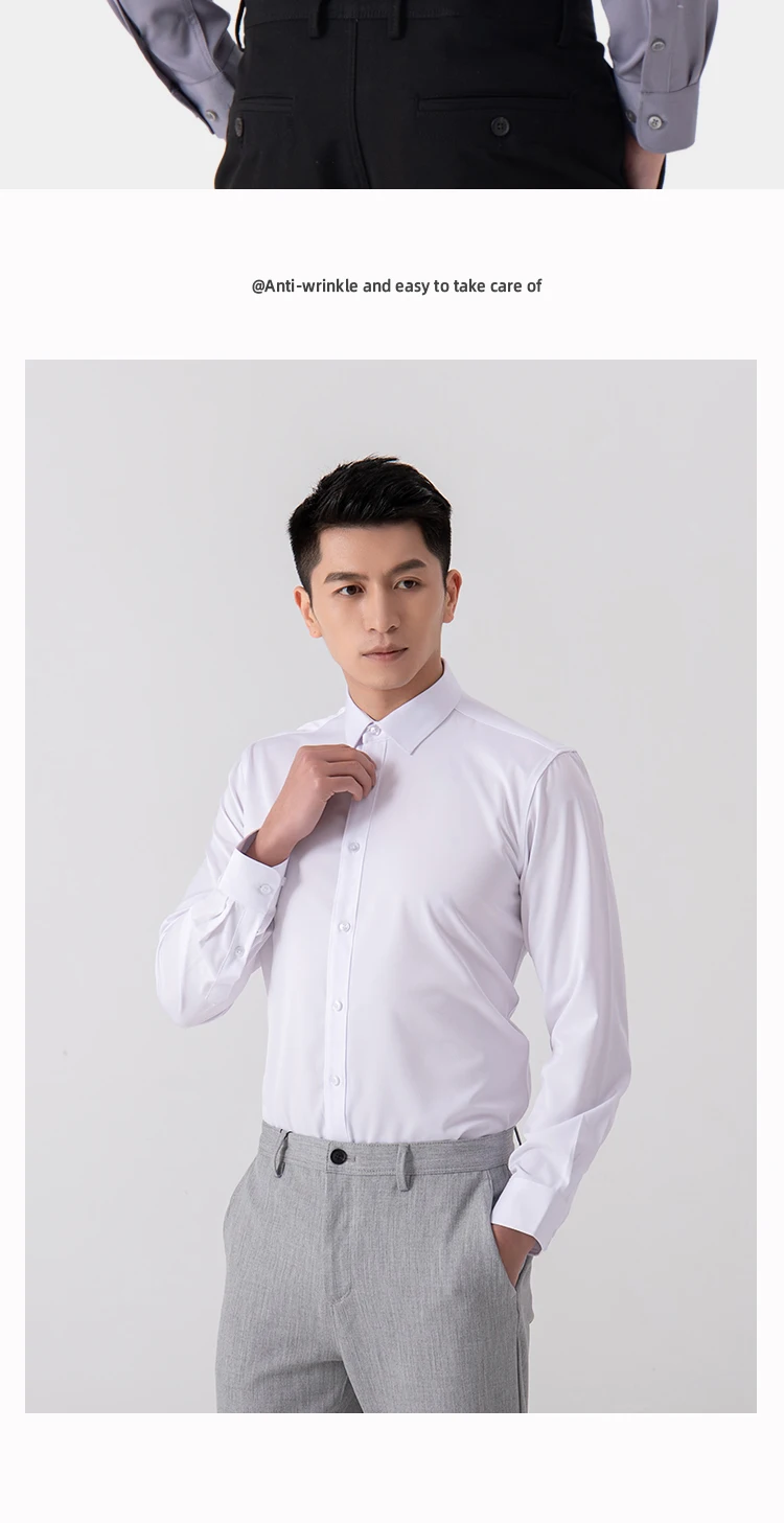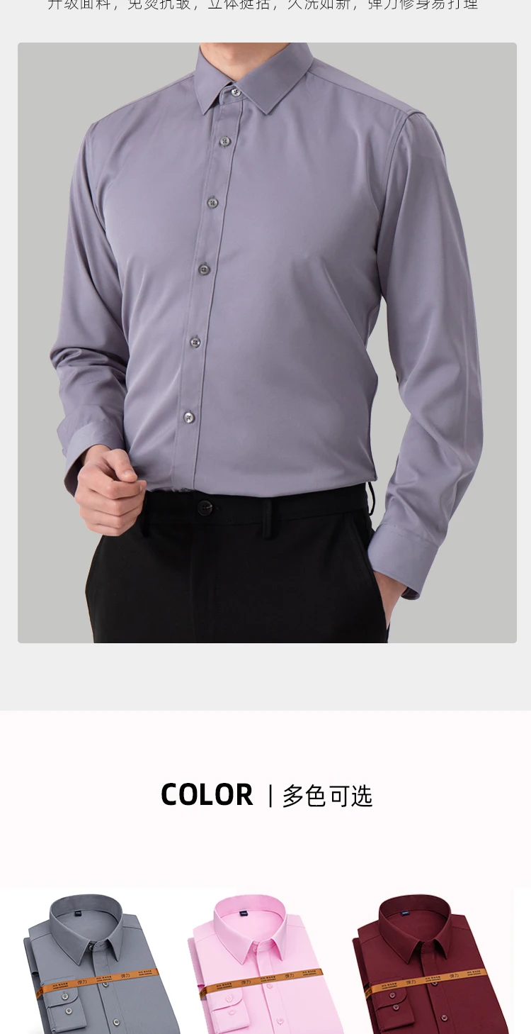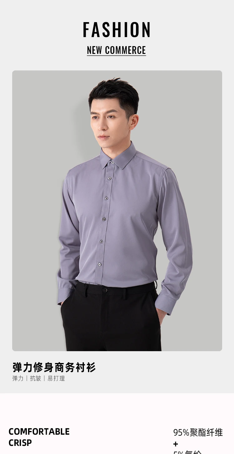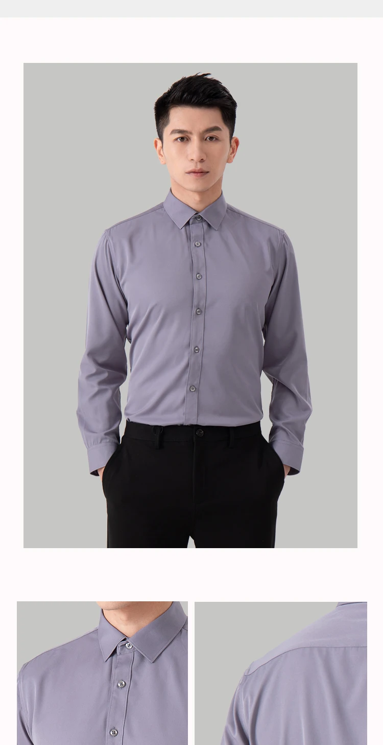 Men’s professional cargo long sleeve shirt business ironing casual social daily office men’s solid color easy to take care of