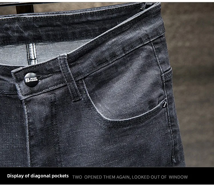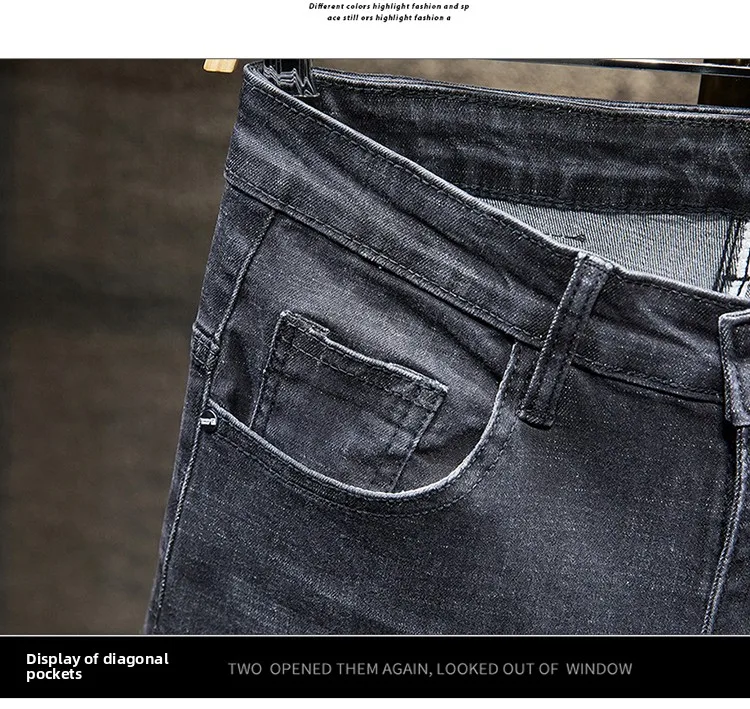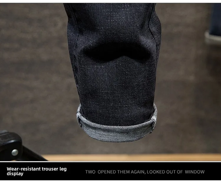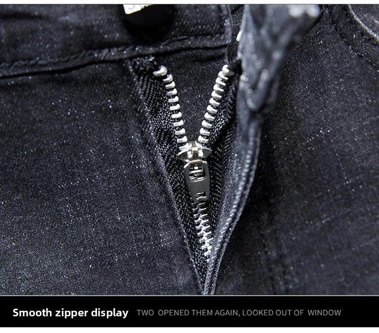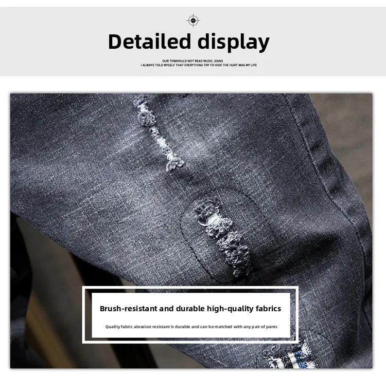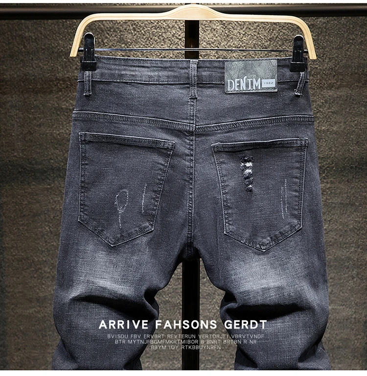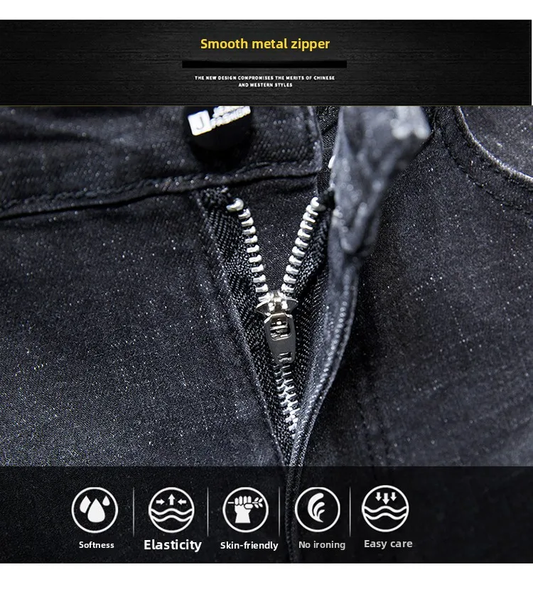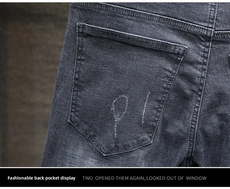 New Men’s Jeans Ripped Fashionable European and American Style Jeans Black Men’s Elastic Comfortable Light Luxury