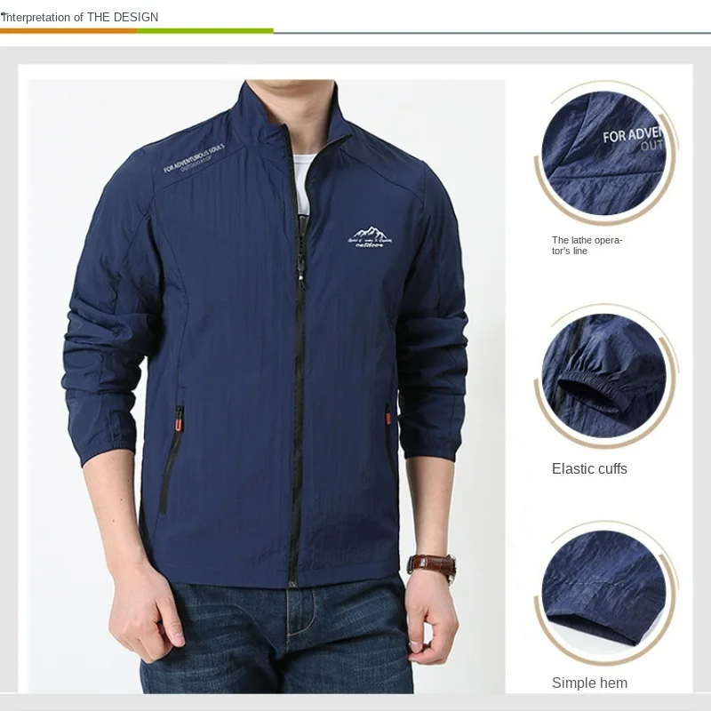 Outdoor Fishing Sun Protection Clothing Men’s Summer Casual Thin Loose Breathable Work Jacket Hiking Waterproof Skin Windbreaker
