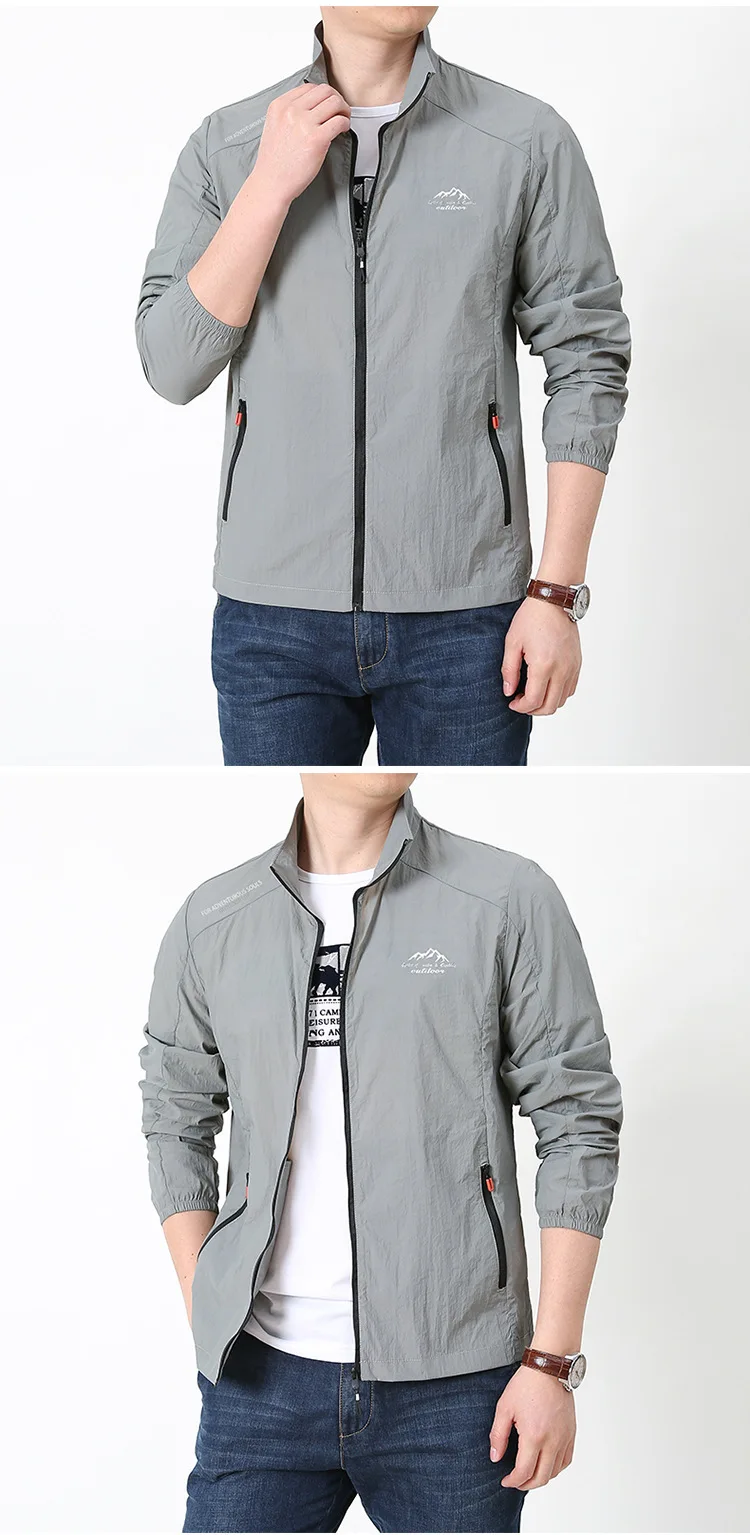Outdoor Fishing Sun Protection Clothing Men’s Summer Casual Thin Loose Breathable Work Jacket Hiking Waterproof Skin Windbreaker