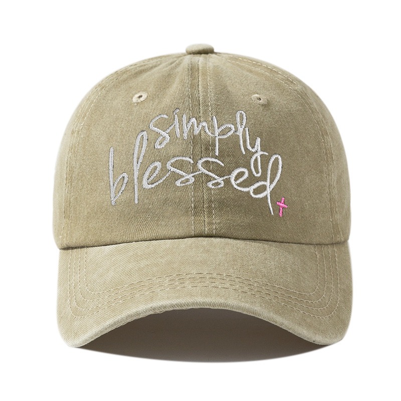 Simply Blessed Wide Brim Sunshade Washed Embroidered English Letter Baseball Cap