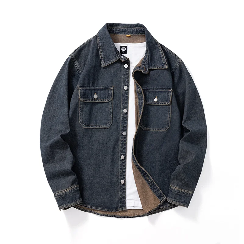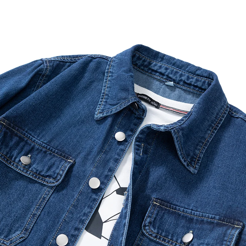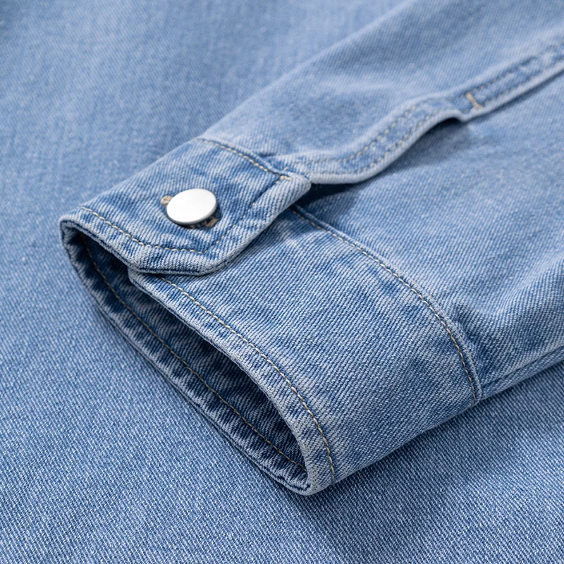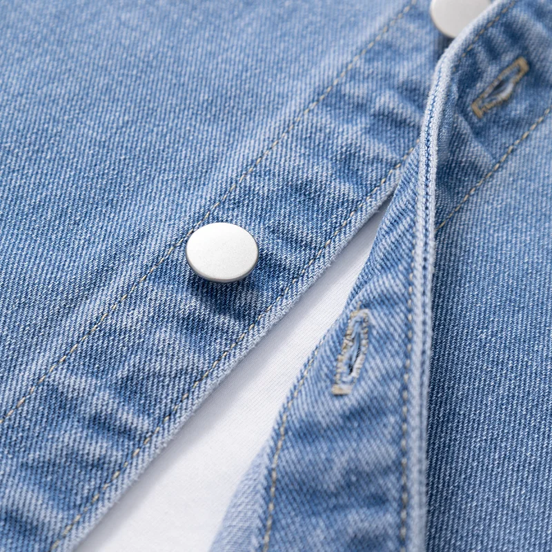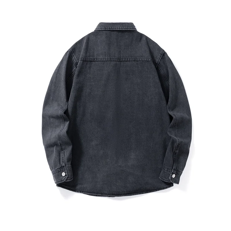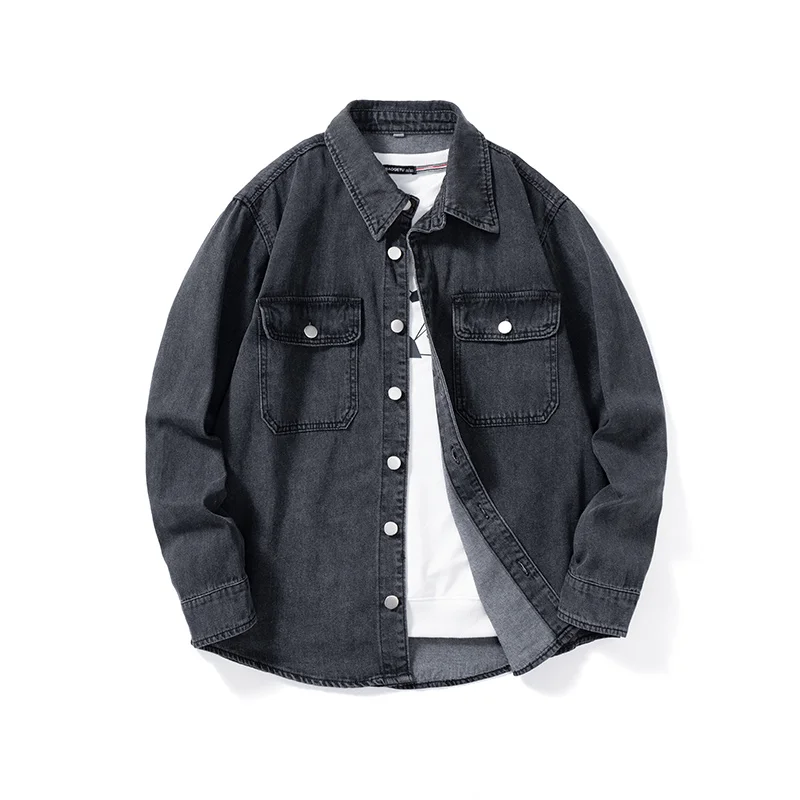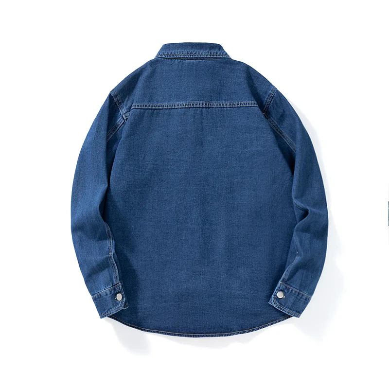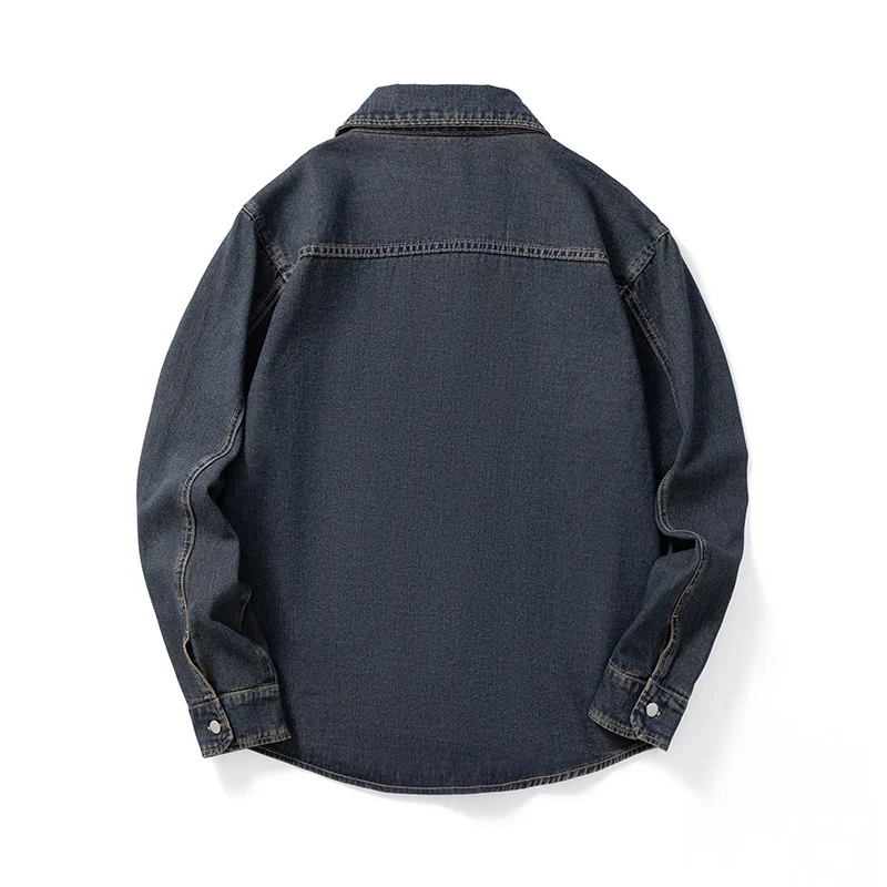 Solid color versatile spring and autumn non stretch denim loose fit shirt, classic style, multi-color selection suitable for goi