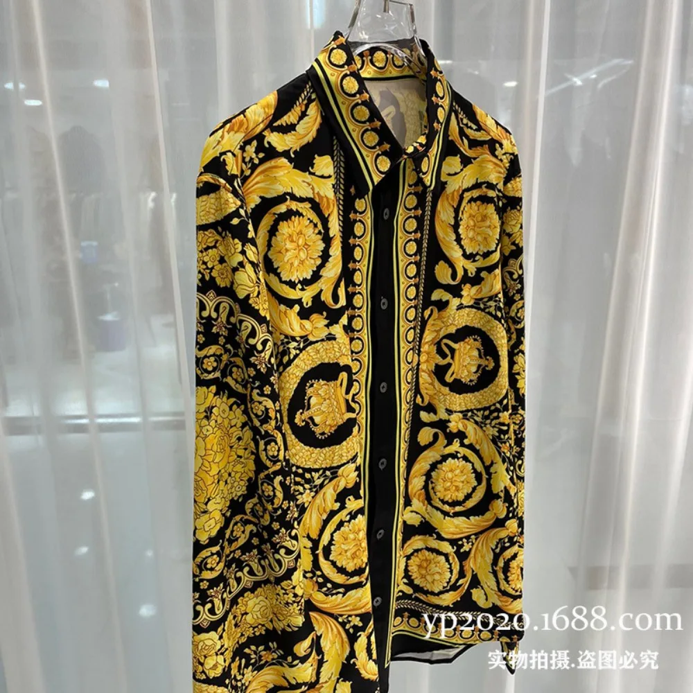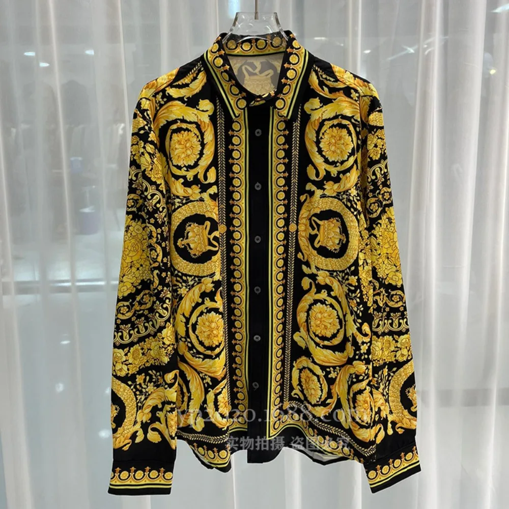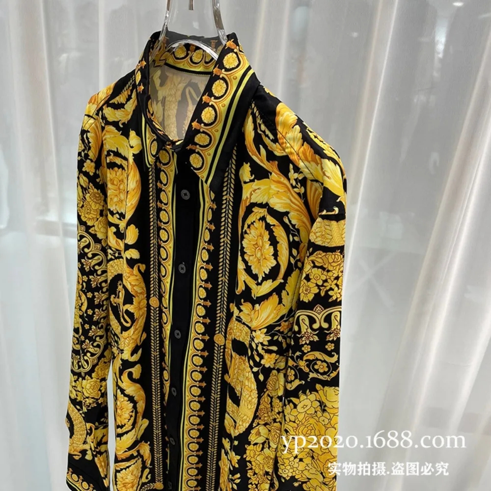 Spring and Autumn Fashion Trends Youth Fashion Digital Printing Men’s Long Sleeved Silky Casual Cardigan Shirt Trendy Men