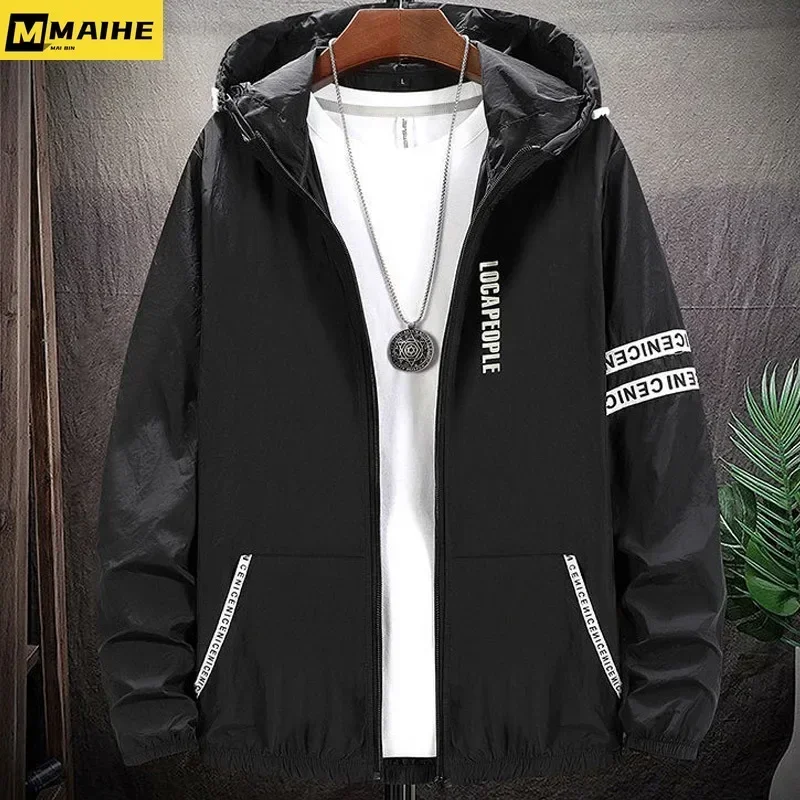 Summer Skin Coats Men SPF Ultra Light UV Sun Protection Big Size Hooded Windbreaker Jacket Men Striped Casual Outwear 8XL 9XL